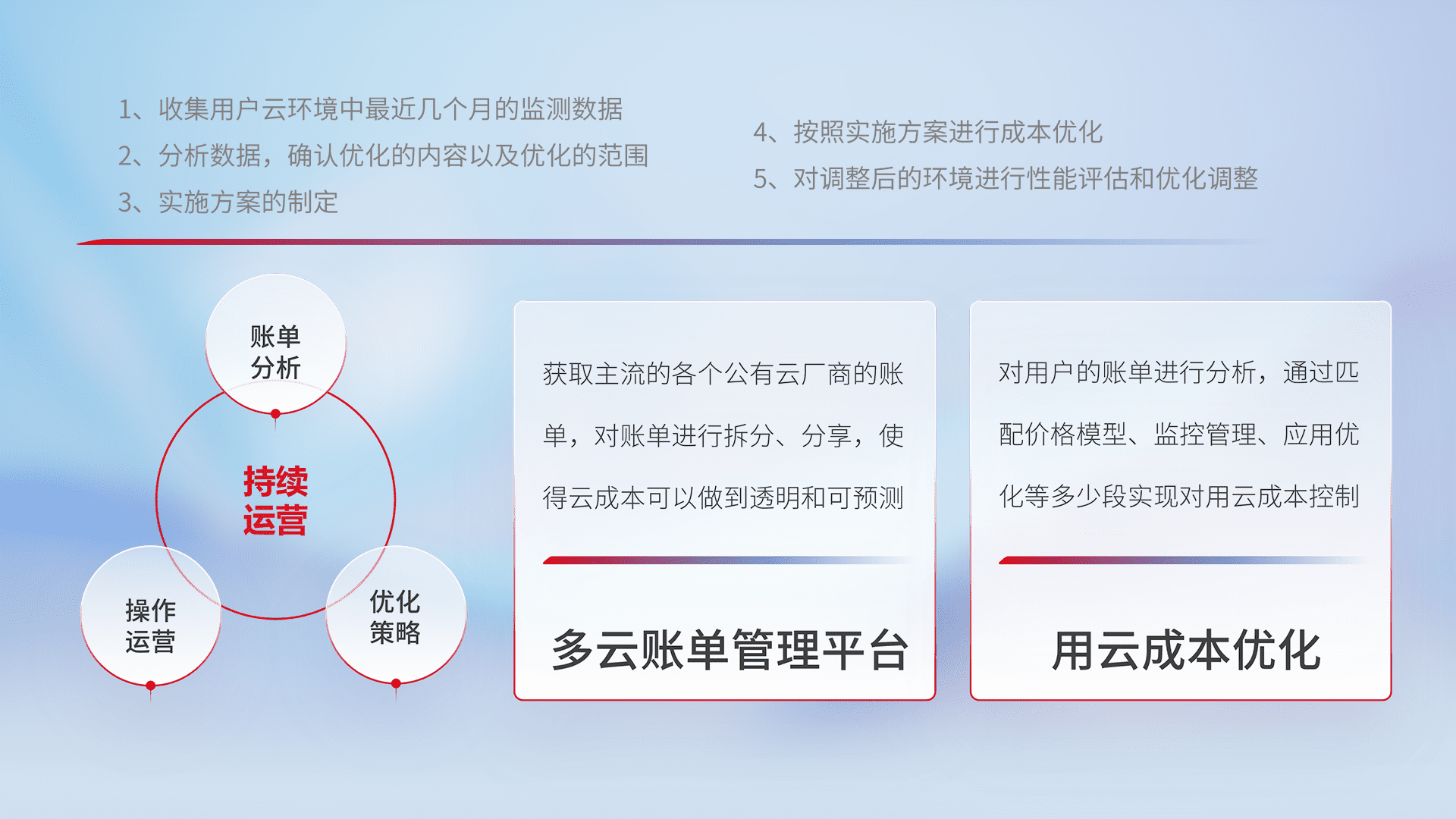 监控业务系统资源开销,,,,对资源的消耗精确计量,,,,实现费用的透明化管理,,不断提升资源使用率,,调整资源购买方式,,,,降低资源费用成本,,,用云成本可预测、、、、用云费用可优化,,,,云资源配额有据可依。。。
